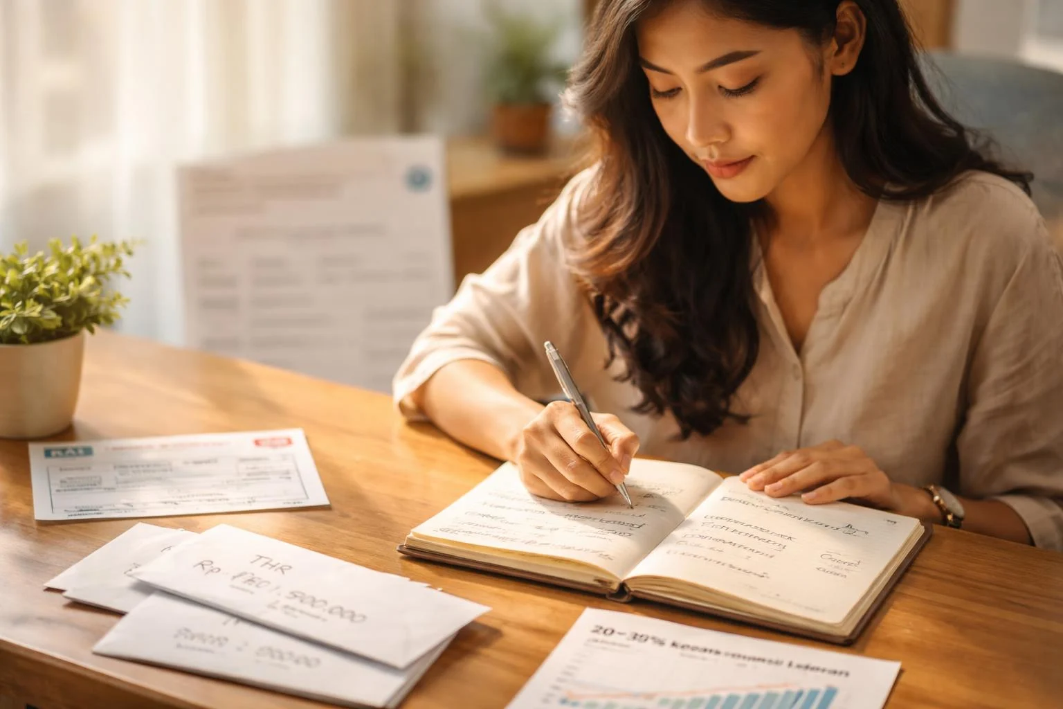 - Baju lebaran: Jika belum dibeli sebelumnya, alokasikan pos khusus agar tidak mengganggu pos lain