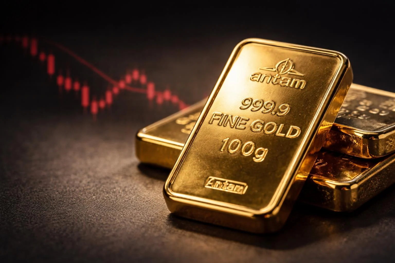 Mandiri Finansial – Harga emas Antam kembali terkoreksi pada Jumat (6/3/2026) setelah sempat menguat tipis sehari sebelumnya, memperpanjang tren pelemahan yang sudah berlangsung dalam beberapa hari terakhir.