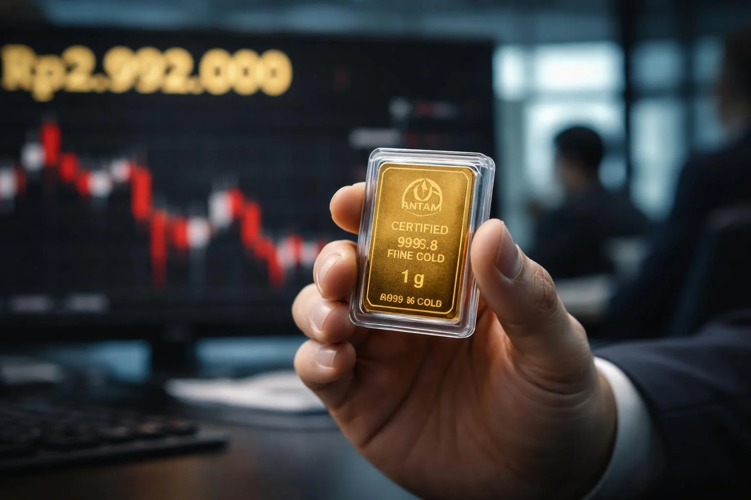 Mandiri Finansial – Harga emas Antam tercatat turun pada Senin (16/3/2026) ke level Rp2.992.000 per gram, menembus batas psikologis Rp3 juta untuk pertama kalinya dalam beberapa waktu terakhir.