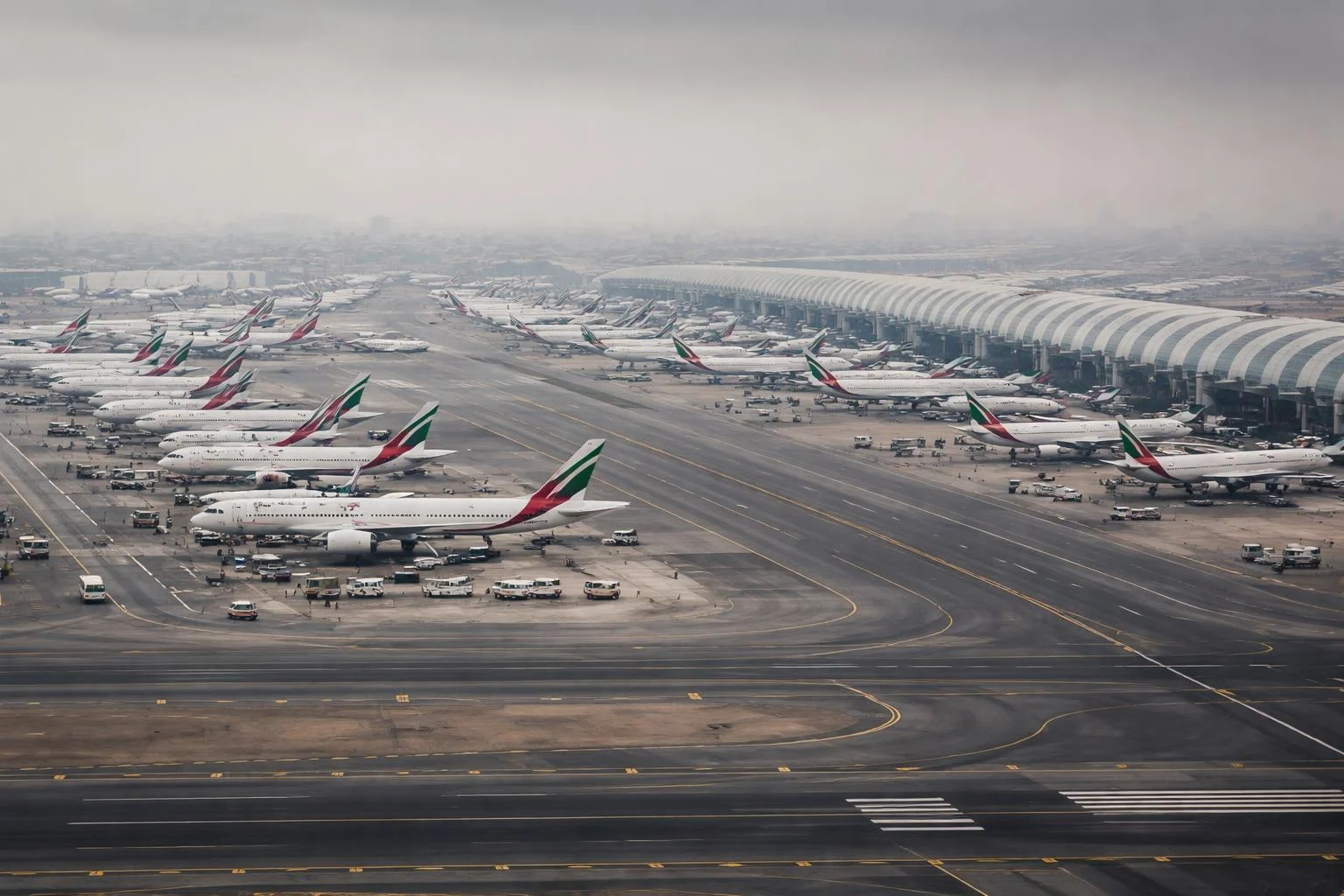 Qatar Airways menghentikan sementara seluruh operasinya, sementara Emirates mengumumkan penghentian layanan di Dubai International Airport, salah satu bandara tersibuk di dunia.